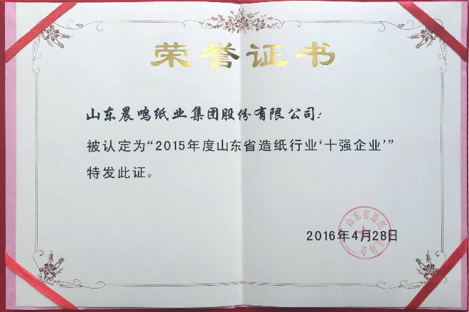 半個(gè)多世紀(jì)的探索和發(fā)展,讓晨鳴集團(tuán)榮譽(yù)滿冠。晨鳴先后榮獲中國(guó)企業(yè)500強(qiáng)、中國(guó)制造業(yè)500強(qiáng)、輕工業(yè)全國(guó)十佳企業(yè)、中國(guó)出口名牌、全國(guó)五一勞動(dòng)獎(jiǎng)狀、中國(guó)企業(yè)管理杰出貢獻(xiàn)獎(jiǎng)、全國(guó)生態(tài)文明建設(shè)十大新聞人物、全國(guó)精神文明建設(shè)先進(jìn)單位、中國(guó)造紙工業(yè)環(huán)境友好企業(yè)、中國(guó)企業(yè)集團(tuán)納稅五百?gòu)?qiáng)、中國(guó)工業(yè)行業(yè)排頭兵企業(yè)、全國(guó)造紙行業(yè)勞動(dòng)關(guān)系和諧企業(yè)、山東省循環(huán)經(jīng)濟(jì)示范單位、低碳山東標(biāo)桿企業(yè)等多項(xiàng)榮譽(yù)稱號(hào)。