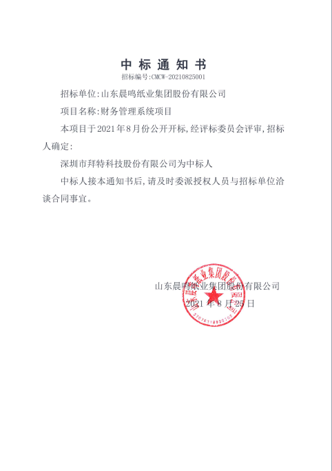 財(cái)務(wù)管理系統(tǒng)項(xiàng)目中標(biāo)通知書(shū)