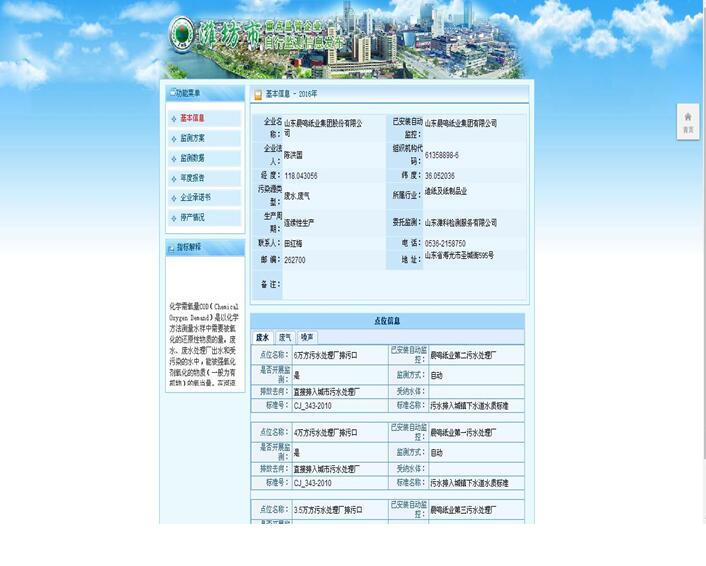 山東晨鳴紙業(yè)集團(tuán)廢水、廢氣自測(cè)公示161019