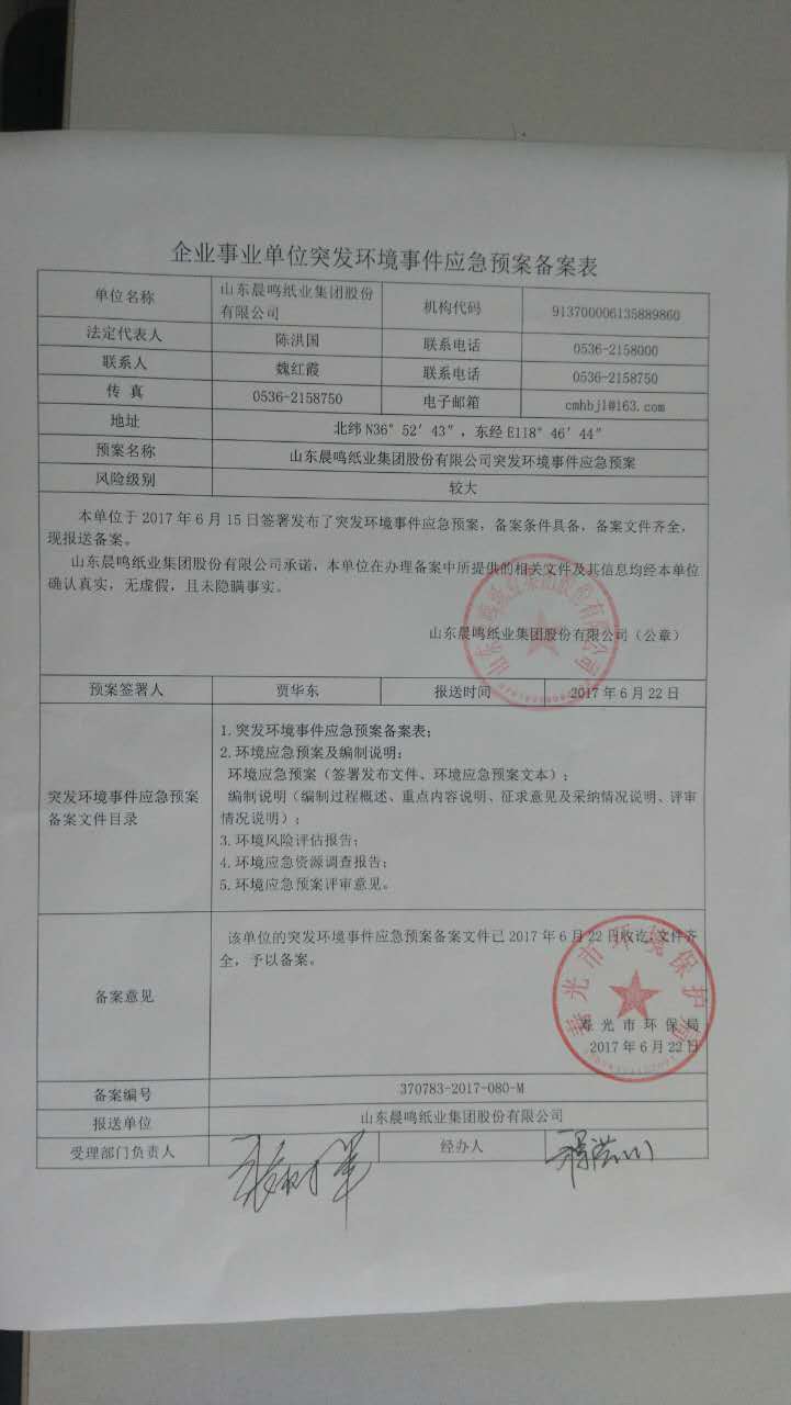 山東晨鳴紙業(yè)集團(tuán)環(huán)境信息公開